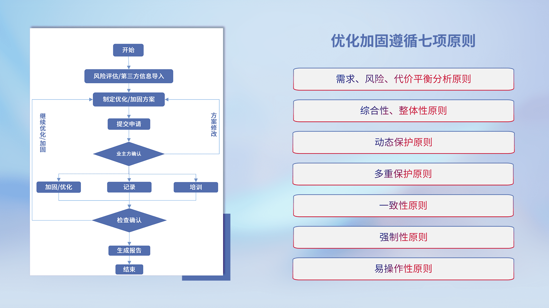 最大程度利用现有资产,,,,对评估发现的问题进行封堵与整改,,,,防止漏洞被利用,,,提升整体网络安全性,,,,为客户带来高标准的优化加固服务。。