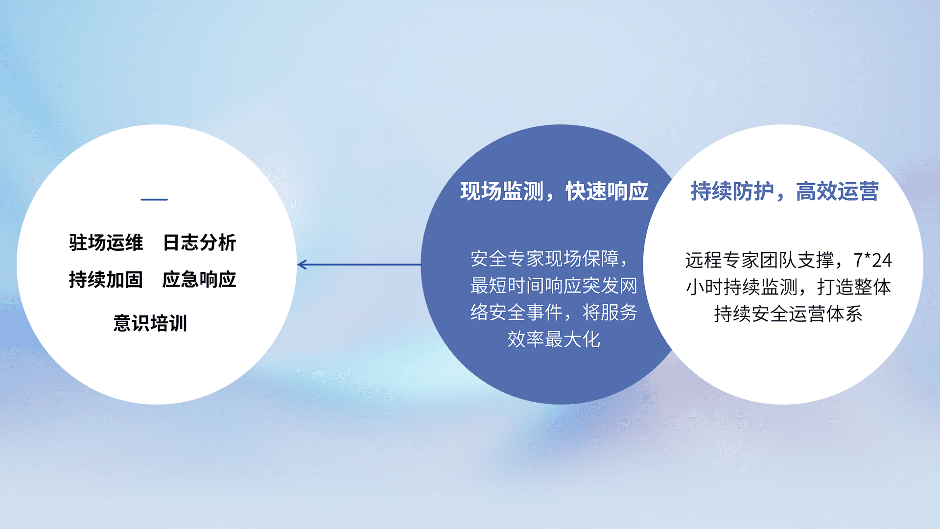 7X24小时持续监测安全事件,保持安全策略有效性,降低资产脆弱性风险,,,,精准拦截黑客攻击,,减少被黑客利用的机会,,第一时间遏制,,,降低损失。。。