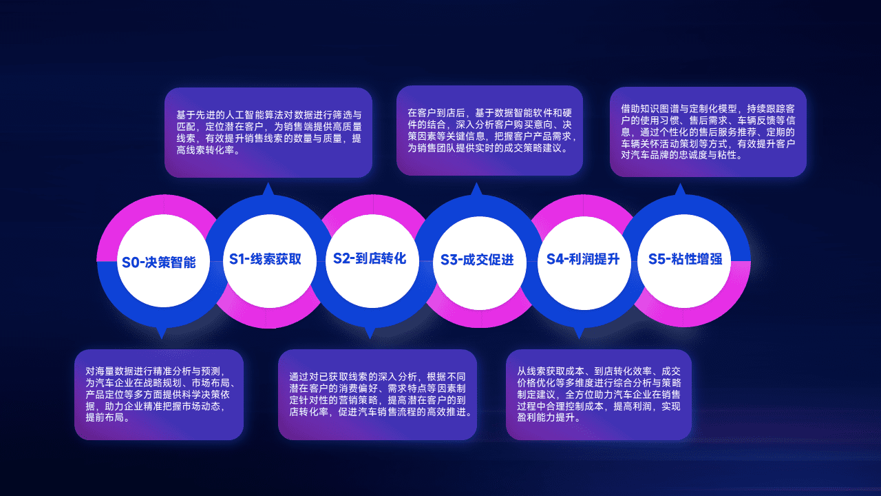 通过拓宽潜在客户来源、、优化线索分配并提高到店转化率,,以增强销售效率。。。。同时,,,利用线索数据不断优化分析模型,,有效提升转化率,,扩大营销影响力。。